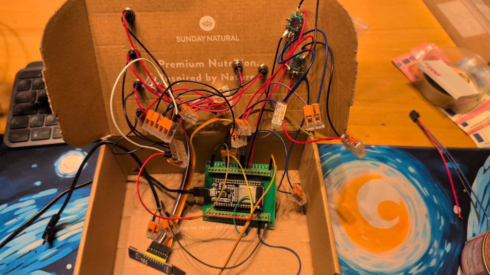 Mit Blau habe ich gelernt, dass man nicht alles direkt an den Hauptcomputer anschließen muss. Der I2C-Bus erlaubt es, mit nur 2 Drähten viele Geräte anzusteuern – ein Konzept das man überall in der Elektronik wiederfindet. Und WAGO-Klemmen machen das Ganze so zugänglich, dass man sich wirklich auf das Wesentliche konzentrieren kann: das Gerät zum Laufen zu bringen.