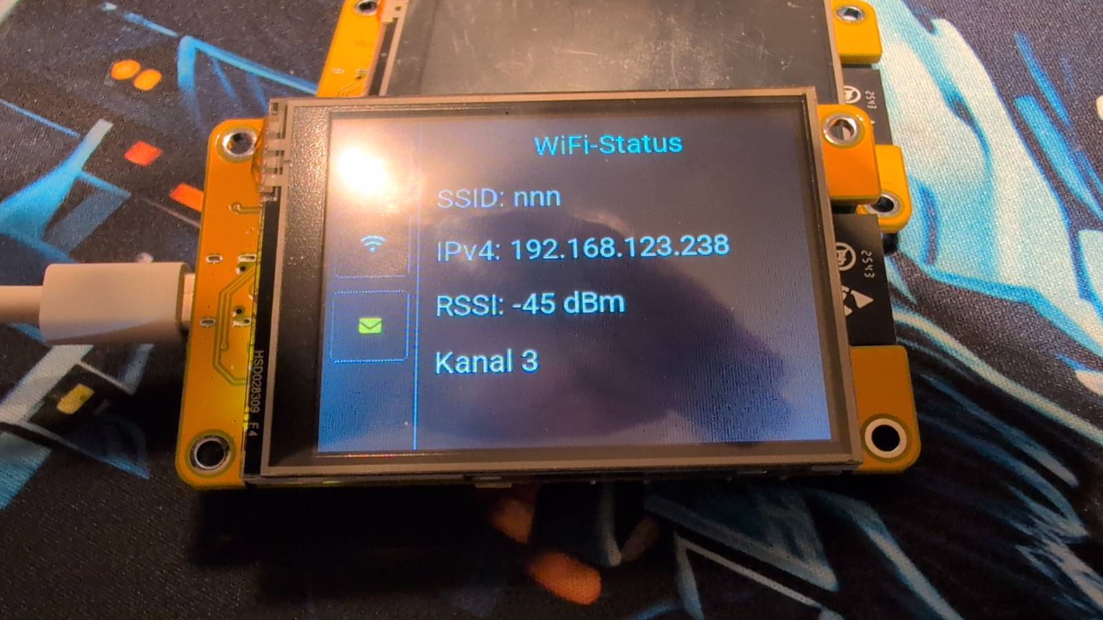 Eine einfache Statusseite: welches WLAN ist verbunden, welche IP-Adresse hat das Gerät, wie stark ist das Signal. Praktisch wenn man wissen will ob alles ordentlich verbunden ist.