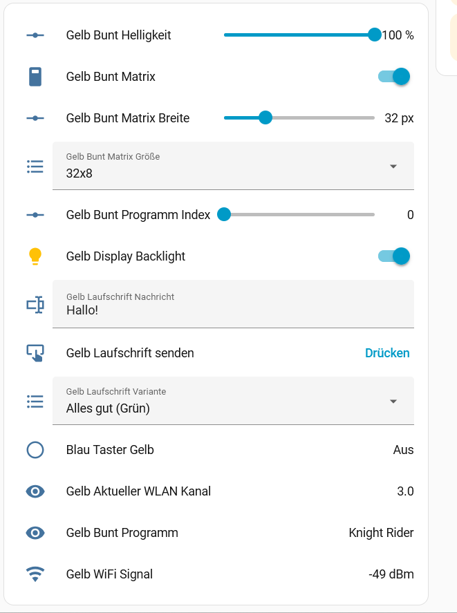 Gelb stellt in Home Assistant folgende Bedienelemente bereit:
